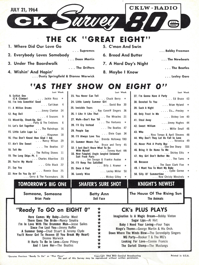 PRE-1967 CKLW Charts (Back To Charts HOME)